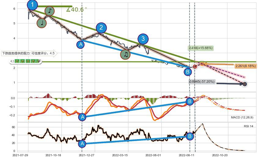 ➢ 预测:2022-08-29,【小幅反弹】稳定目前下跌趋势的前提下,预测价格:2.261