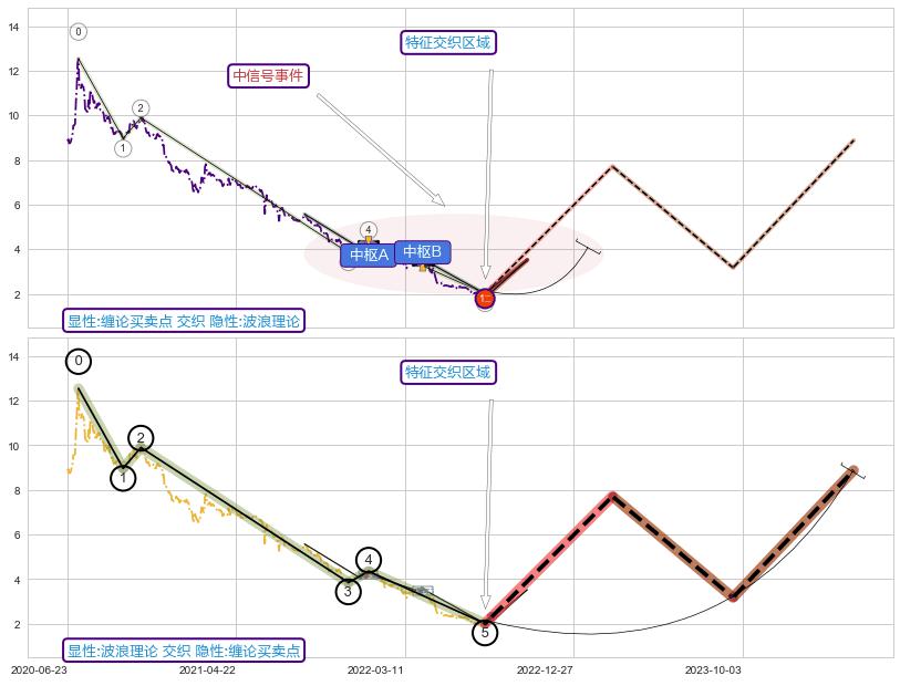 ➣ 缠论买卖点:下降缠中枢AB形成后猜想拐点1买已到达,猜想后续持续拉升(均值回复)