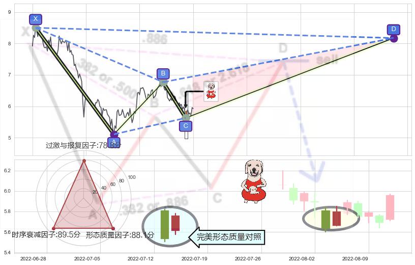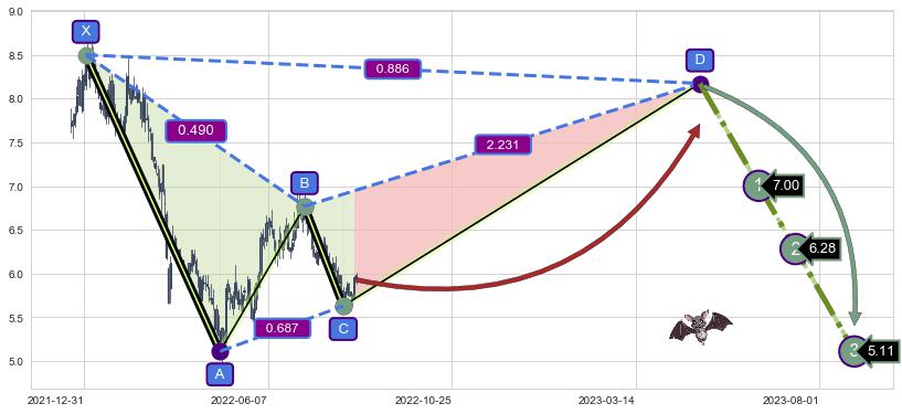 ➣ 未完成【蝙蝠】形态起点X: 2022-01-04, 已到达C点: 2022-08-03, 预测最终D点: 2023-05-02, 共334交易日