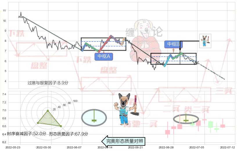 ➢ 下跌螺旋桨 🔜 缠论中枢点破位中枢B支撑下拉 综合量化分数:49.51 【中性】