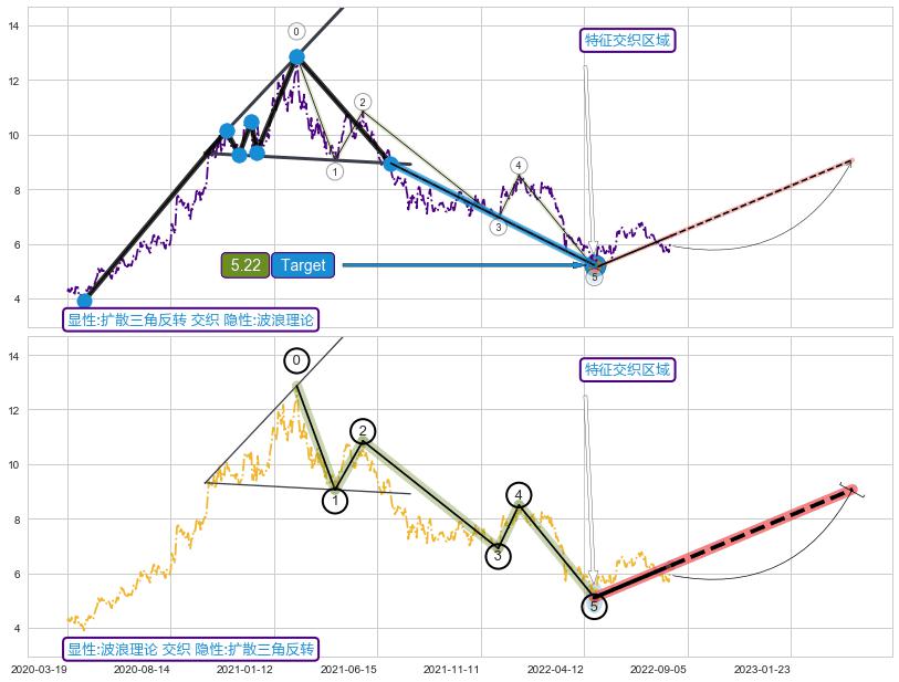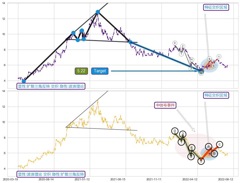 ➢ 波浪理论属【短级别信号事件】扩散三角反转属【长级别信号事件】长短周期组合信号事件, 短长事件长度比22.82%