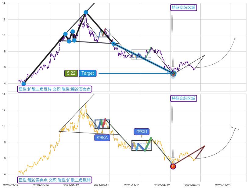 ➣ D点拟合预测价格8.17,距离最后交易收盘价格5.93相差 +37.82%