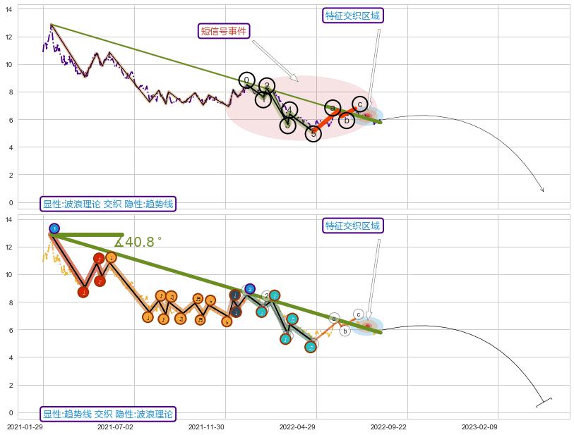 ➣ 波浪理论:猜想击穿破位c点后继续下跌 → 下跌 → 风险信号 → 小趋势跟踪