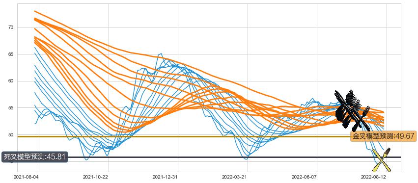 ➣ 120小时均线于(2022-07-20: 52.69)形成【死叉】基于【死叉历史模型】预测死叉后最低波谷价格: 41.45, 死叉后最低价格43.64,尚未达到预测最低波谷价格, 预期继续下跌