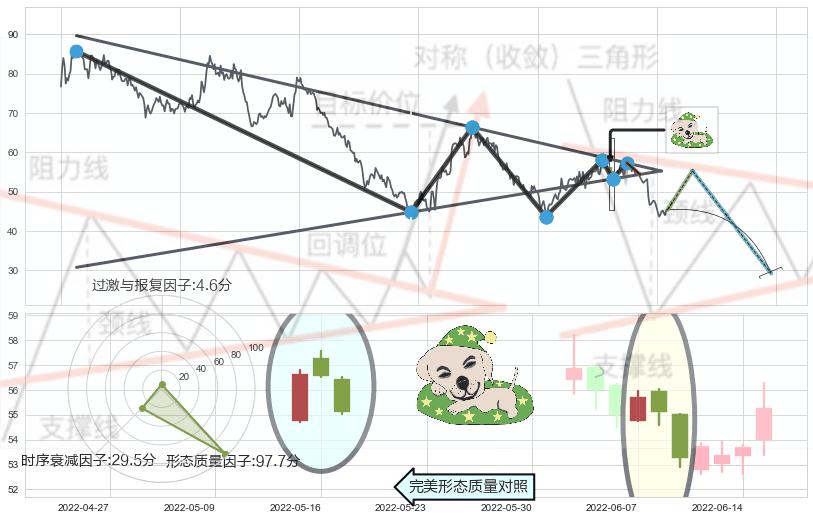 ➢ 下降【对称】三角形整理综合量化分数: 38.86 【强烈看空】
