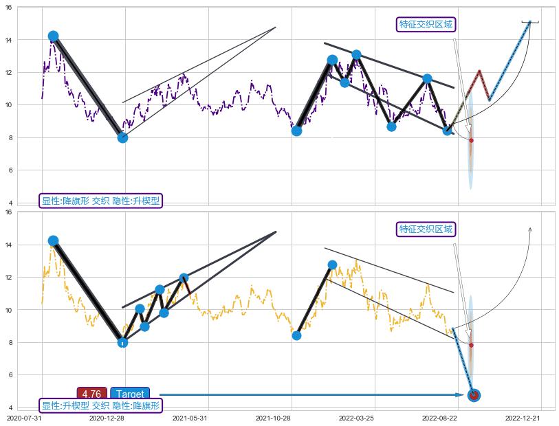 ➣ 【未确认突破,预测即将形成突破】降⚑旗形起点:2021-11-05, 预测突破点:2022-09-08,形态共208交易日
