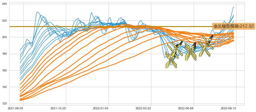 📈 多条均线基于【金叉历史模型】预测最高波峰价格的平均值: 212.92