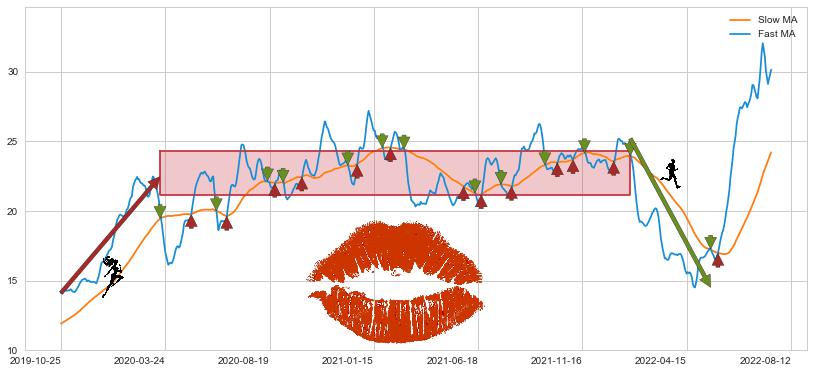 2022-01-20至2022-05-23 慢线与快线呈空头排列, 慢线与快线接触少,无缠绕