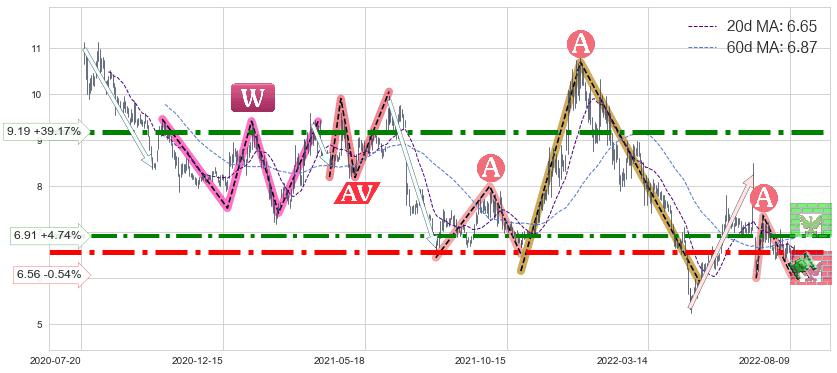 ♘ 阻力价格位6.91,可信任强度82.89%,距离最后交易2022-08-12形成的收盘价格6.60相差 +4.74%
