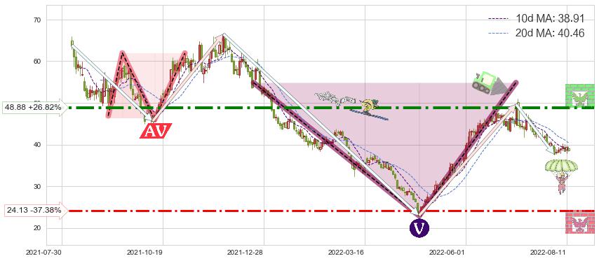♘ 阻力价格位48.88,可信任强度76.86%,距离最后交易2022-08-12形成的收盘价格38.54相差 +26.82%