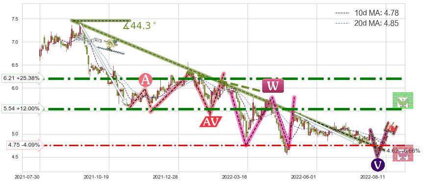 ➢ 【已确认突破】最后价格:4.95与最小【整理】第一目标价格→(2022-08-31: 4.45 )相较: 下跌空间【较小】