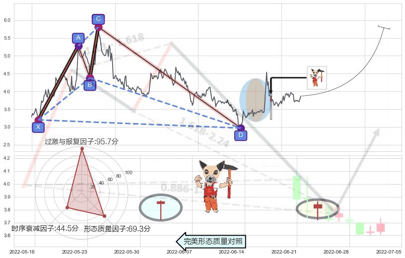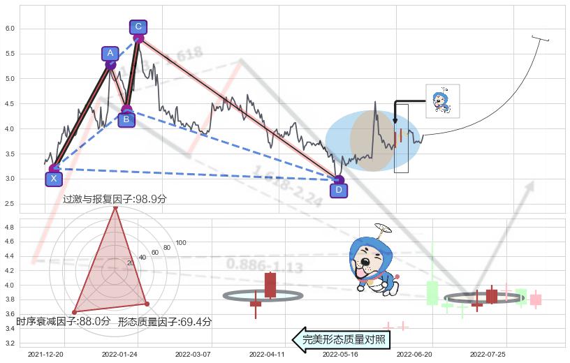 ➢ 上涨螺旋桨形态 🔜 谐波鲨鱼d拐点上涨支撑 综合量化分数:52.58 【中性】