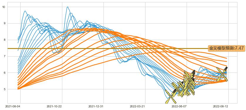 ➣ 80小时均线于(2022-06-10: 5.58)形成【金叉】基于【金叉历史模型】预测金叉后最高波峰价格: 8.09, 金叉后最高价格6.66,尚未达到预测最高波峰价格, 预期继续上涨
