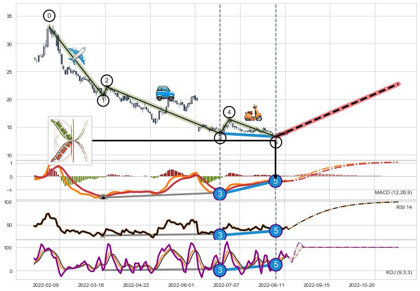➣ 波浪理论:猜想止跌 → 上涨 →【拐点】浪5已完成 → 大趋势均值回复