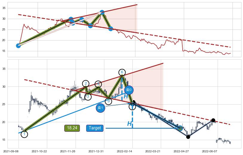 ➢ 【卖1】: 激进型 卖点→(2022-02-14: 25.31 )形成突破【扩散】三角形反转【反转】形态