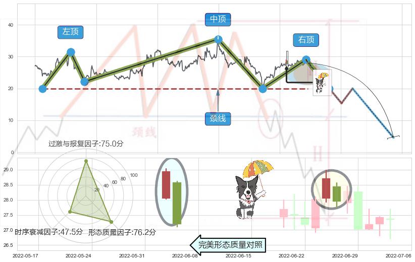 ➢ 🕰 价格走势在2022-06-30至2022-06-30期间形成看跌(高位倒锤头)流星线,残存影响值:-4.01