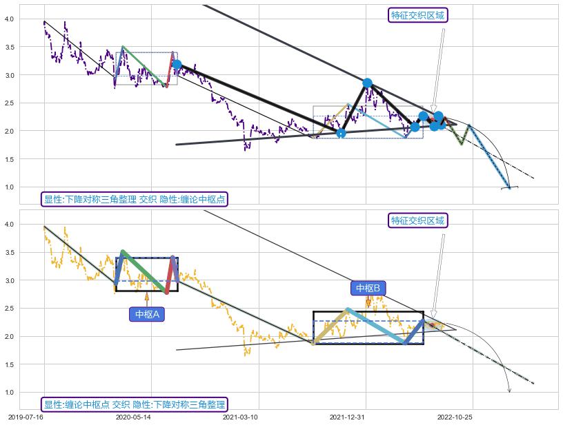 ➢ 下降对称三角整理与缠论中枢点信号事件周期长度级别相同,同周期信号事件