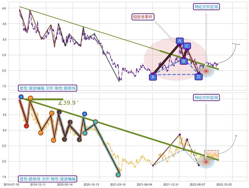 ➢ 谐波蝙蝠属【短级别信号事件】趋势线属【长级别信号事件】长短周期组合信号事件, 短长事件长度比23.76%