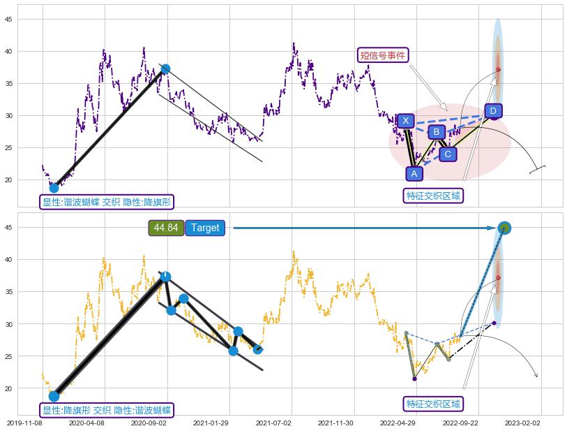 ➣ 未完成【蝴蝶】形态起点X: 2022-04-06, 已到达C点: 2022-07-15, 预测最终D点: 2022-10-26, 共133交易日