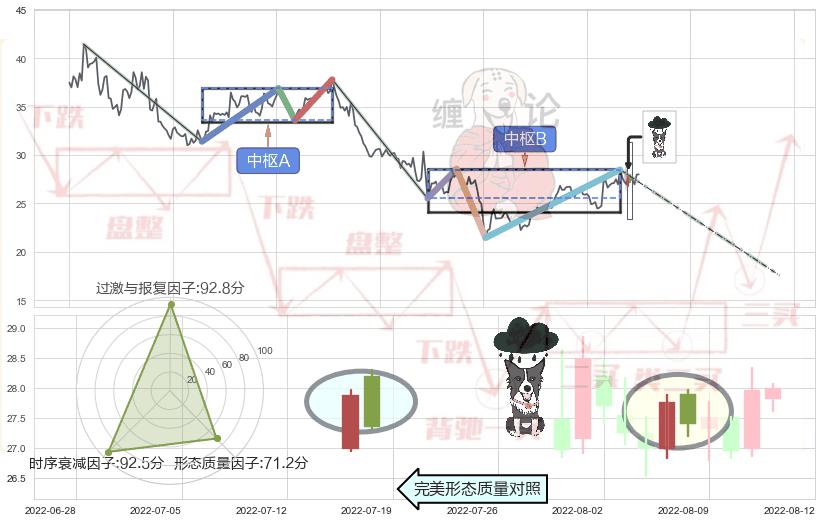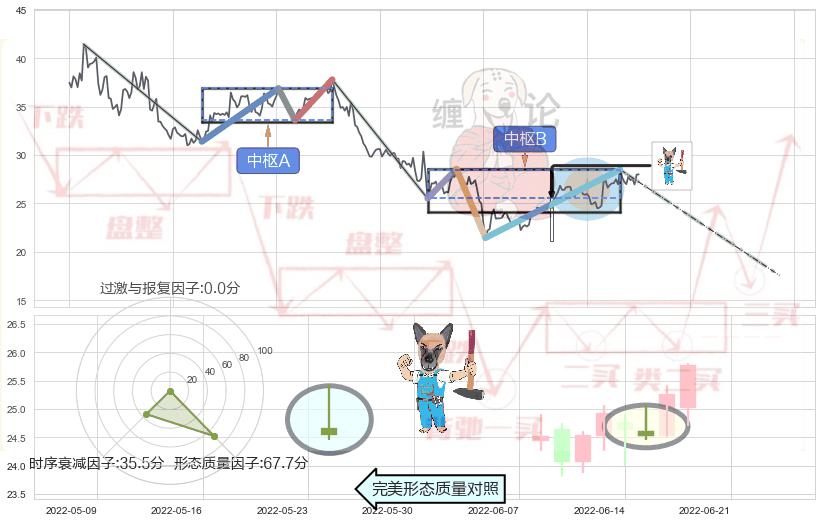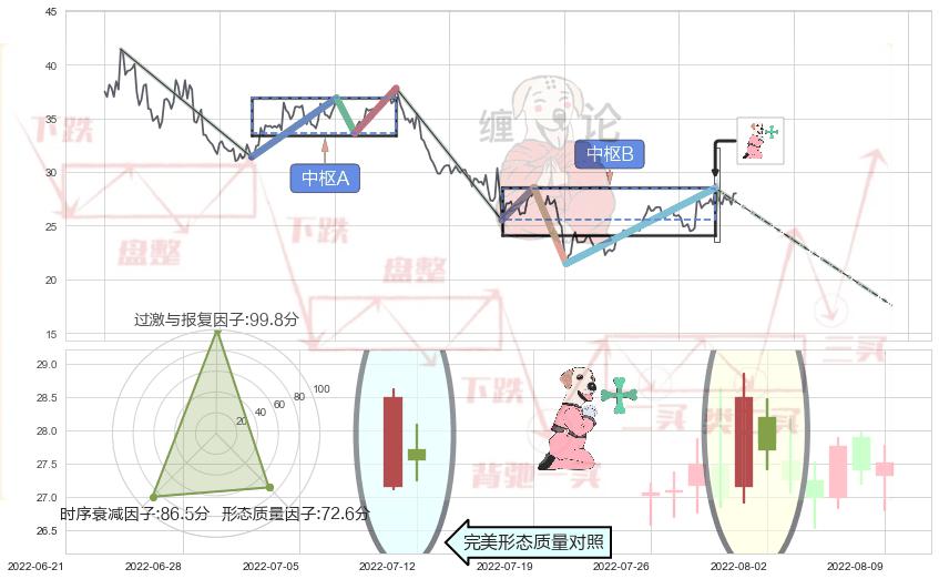 ➢ 下跌孕十字星 🔜 缠论中枢点破位中枢B支撑下拉 综合量化分数:46.50 【中性】