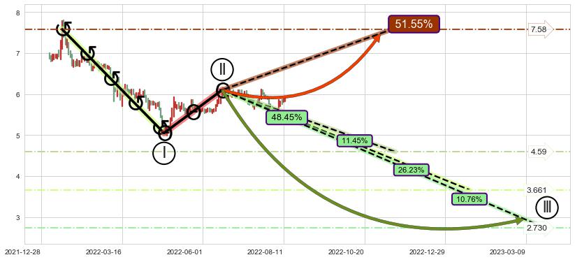 ➢ AI预测: 假定反转继续,第❸价格目标位置(2022-08-22, 6.10)