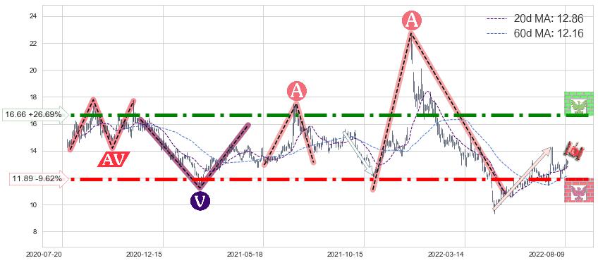 ♘ 阻力价格位16.66,可信任强度94.65%,距离最后交易2022-08-12形成的收盘价格13.15相差 +26.69%