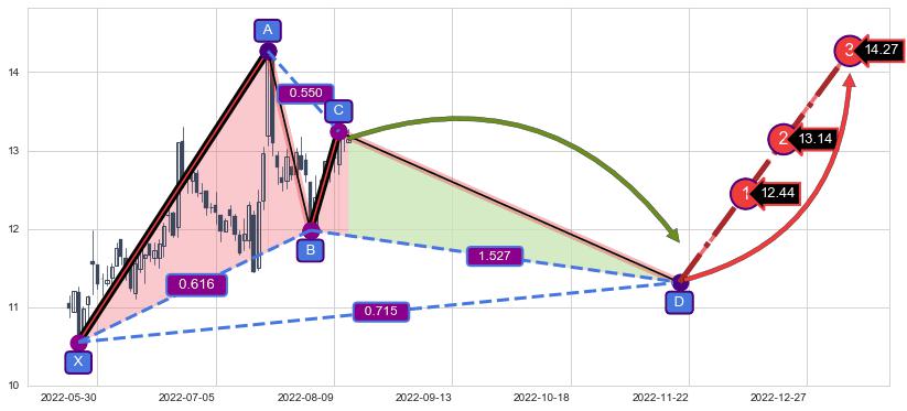 ➣ 未完成【伽利】形态起点X: 2022-05-24, 已到达C点: 2022-08-10, 预测最终D点: 2022-11-18, 共128交易日