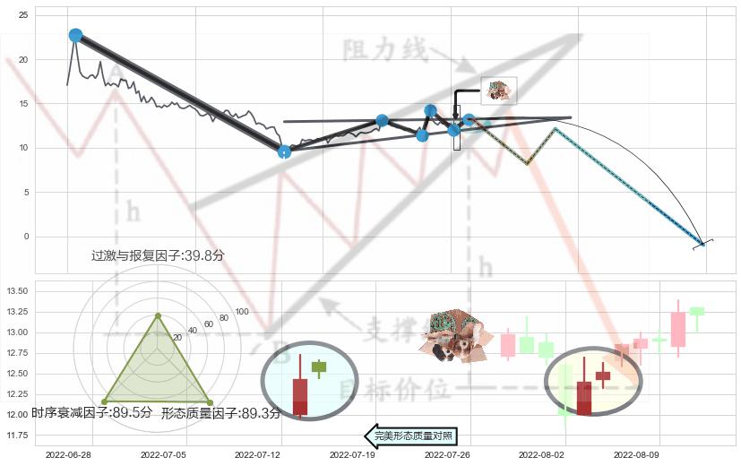 ♘ 支撑价格位11.89,可信任强度89.08%,距离最后交易2022-08-12形成的收盘价格13.15相差 -9.62%