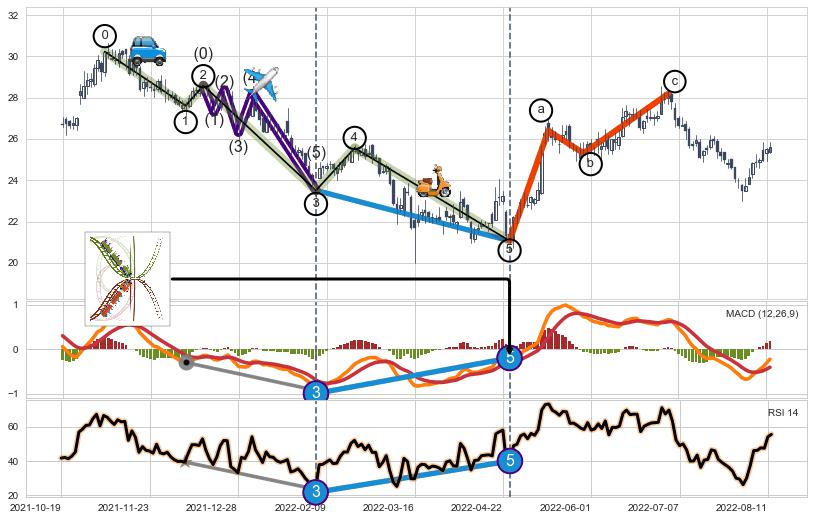 ➣ 波浪理论:猜想达到c点后小回调终止反转上涨 → 上涨 → 【拐点】临近 → 阶段均值回复结束后继续大周期趋势跟踪