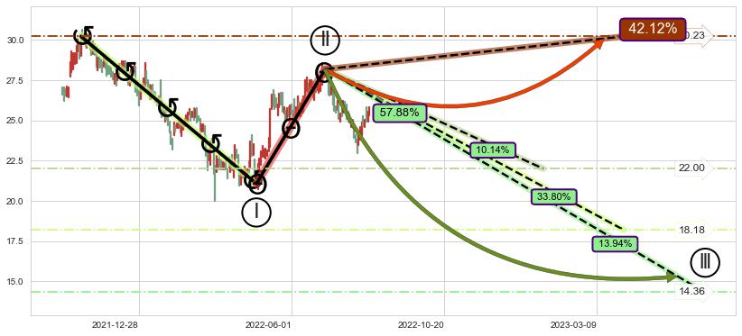 ➣ D点拟合预测价格34.41,距离最后交易收盘价格25.62相差 +34.30%