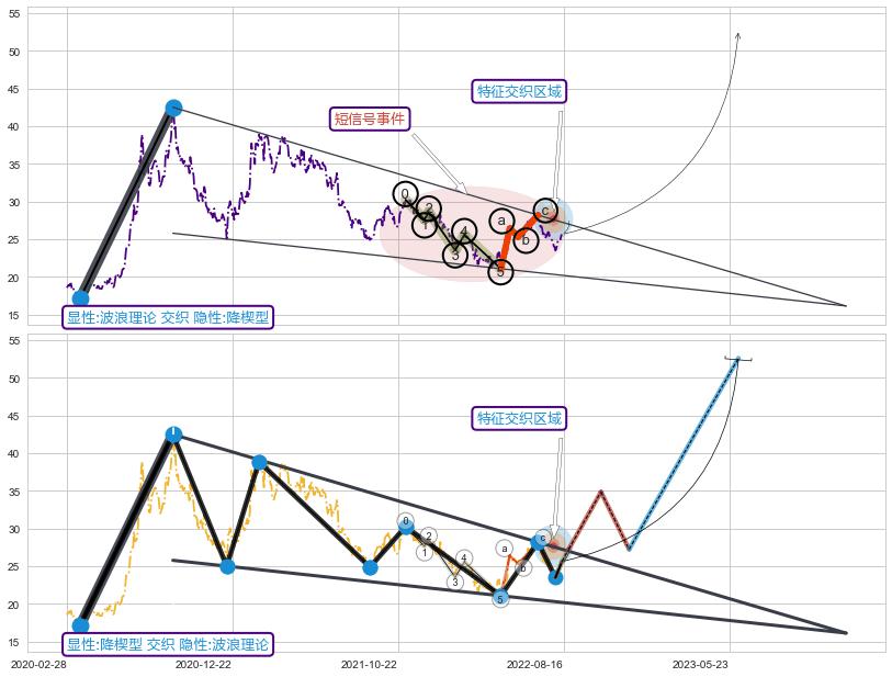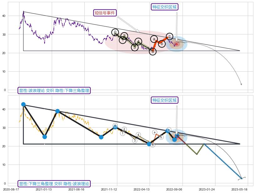 ➢ 波浪理论属【短级别信号事件】下降三角整理属【长级别信号事件】长短周期组合信号事件, 短长事件长度比34.18%