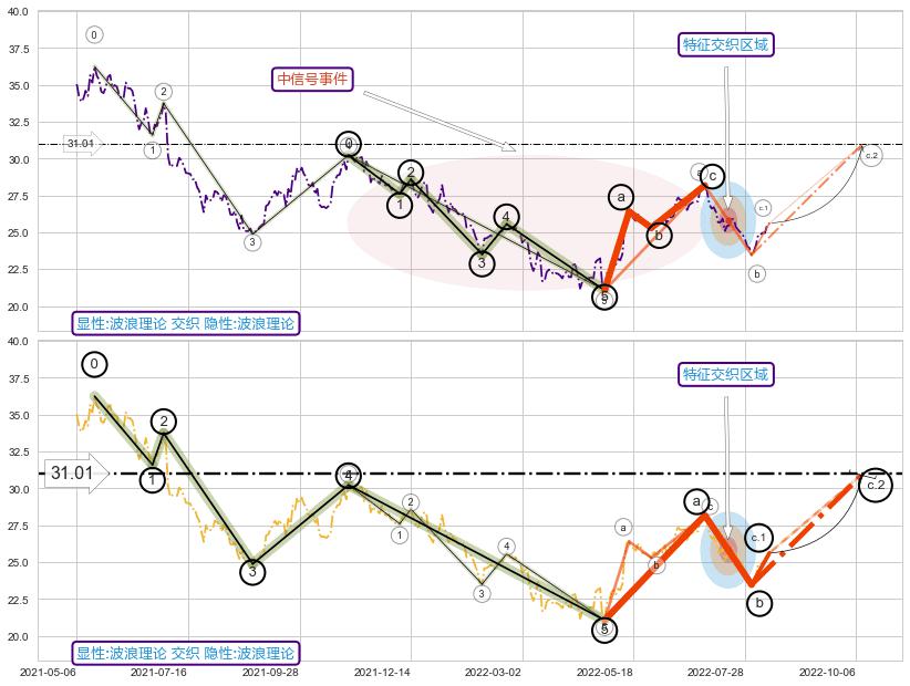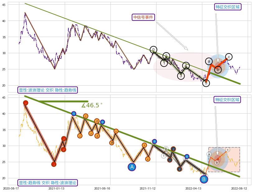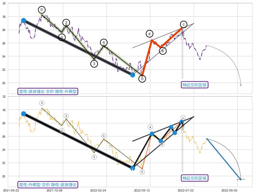 ➣ 波浪理论:猜想击穿破位c点后继续下跌 → 下跌 → 风险信号 → 小趋势跟踪