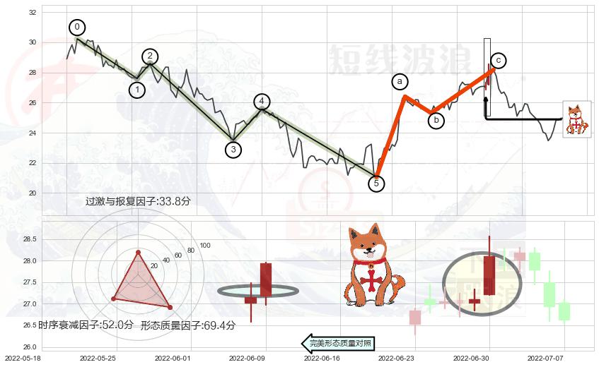 ➢ 锤头线(锤子线) 🔜 波浪理论击穿突破C点继续上涨 综合量化分数:52.11 【中性】