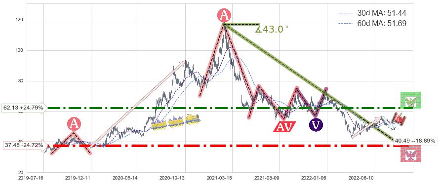♘ 阻力价格位62.13,可信任强度75.52%,距离最后交易2022-08-12形成的收盘价格49.79相差 +24.79%