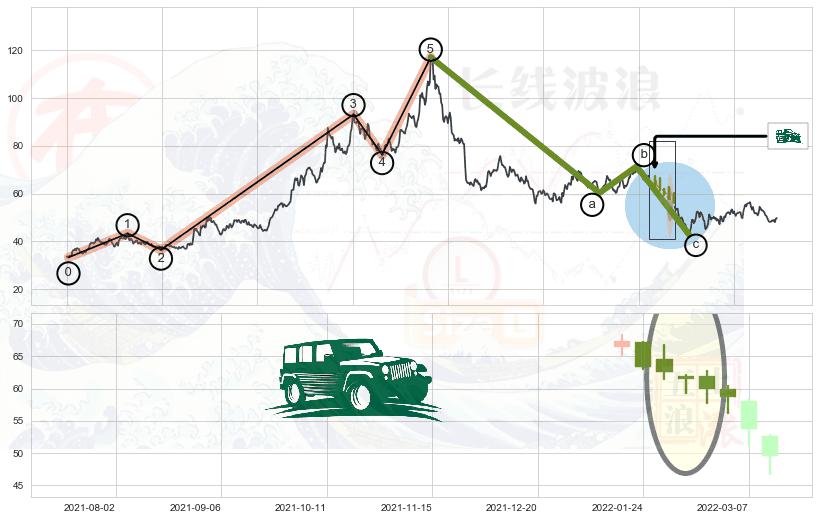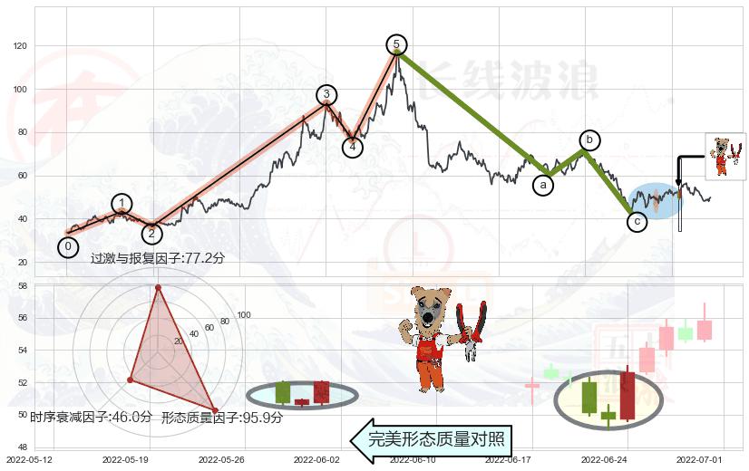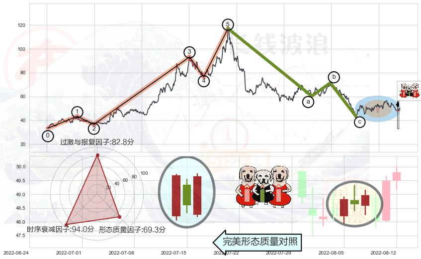 ➢ 高档五阴线 🔜 波浪理论击穿破位C点继续下跌 综合量化分数:47.64 【中性】