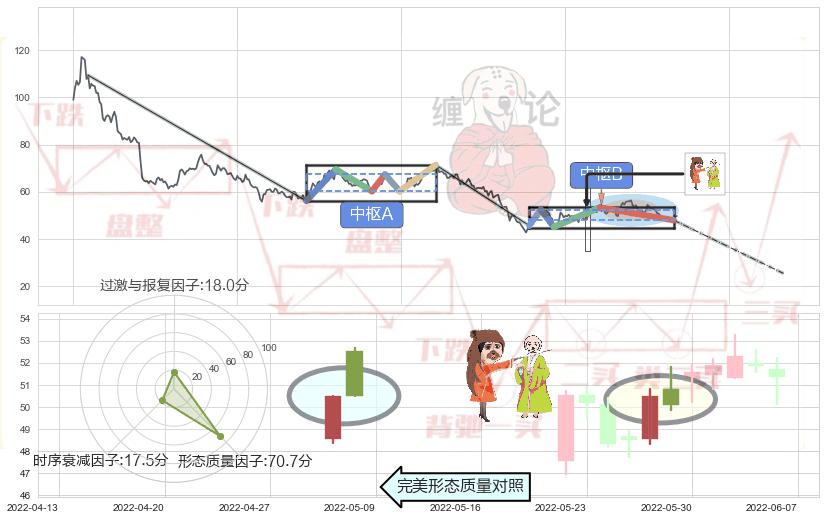 ➢ 下跌镊子线(n形磁铁) 🔜 缠论中枢点破位中枢B支撑下拉 综合量化分数:49.79 【中性】