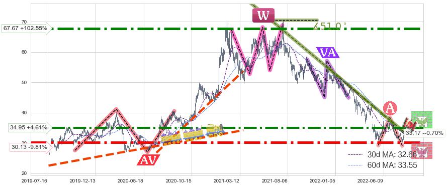 ♘ 阻力价格位34.95,可信任强度76.22%,距离最后交易2022-08-12形成的收盘价格33.41相差 +4.61%