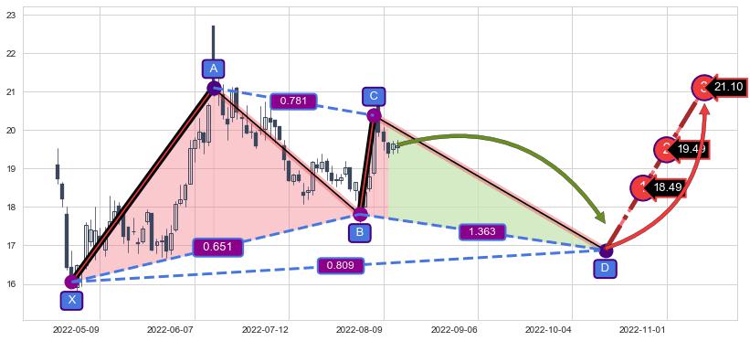 ➣ AI预测: 假定反转启动后, 第❸目标位置(2022-11-11, 21.10)