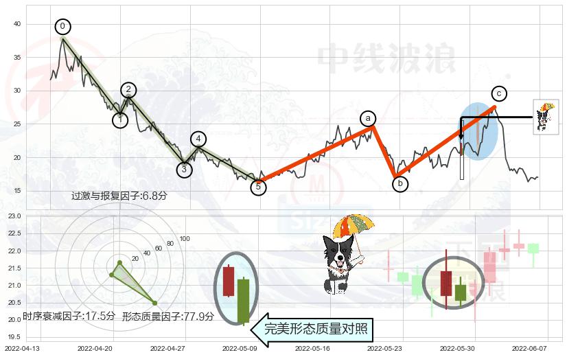 ➣ 看跌(高位倒锤头)流星线 + 波浪理论c点反弹终止反转下跌信号叠加后【目标达成率】中等,【看空】信号叠加【存续影响中等】