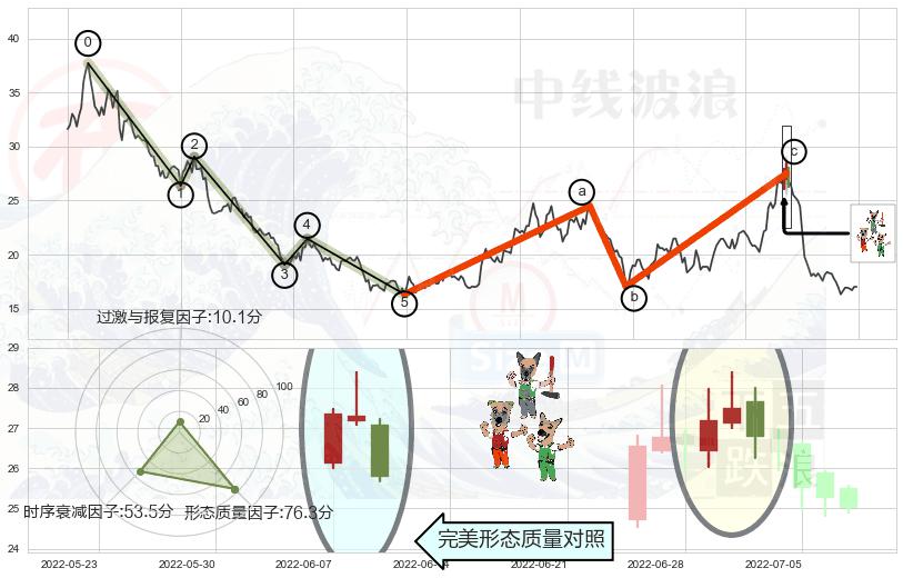 ➢ 看跌(高位倒锤头)流星线 🔜 波浪理论c点反弹终止反转下跌 综合量化分数:48.20 【中性】