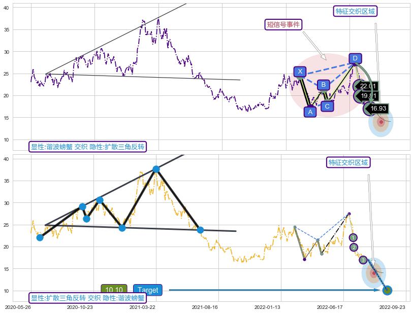 ➣ 已完成【螃蟹】形态起点X: 2022-02-21, 终点D: 2022-06-30, 共88交易日