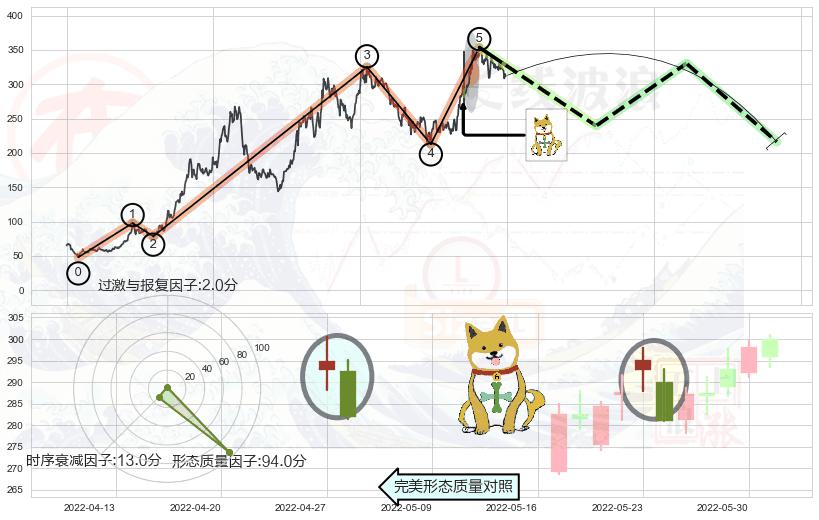 ➢ 看跌(高位倒锤头)流星线 🔜 波浪理论上涨浪:浪5回调拐点 综合量化分数:44.71 【偏空】