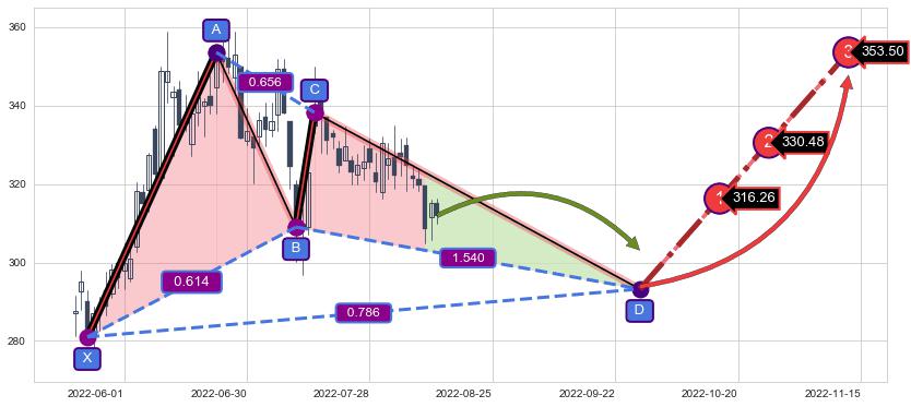 ➣ AI预测: 假定反转启动后, 第❸目标位置(2022-11-15, 353.50)
