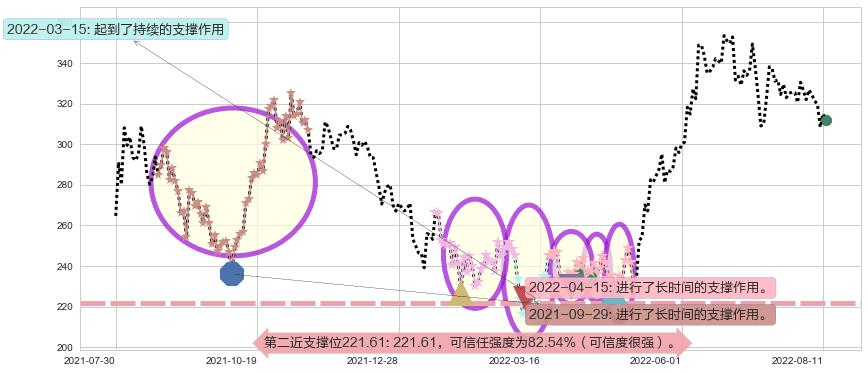 ♘ 支撑价格位221.61,可信任强度82.54%,距离最后交易2022-08-12形成的收盘价格311.93相差 -28.96%