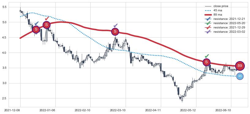 ➣ 89小时均线于(2022-06-21: 3.551)形成【金叉】基于【金叉历史模型】预测金叉后最高波峰价格: 4.30, 金叉后最高价格4.51,已经上涨超出预测最高波峰价格, 预期回调