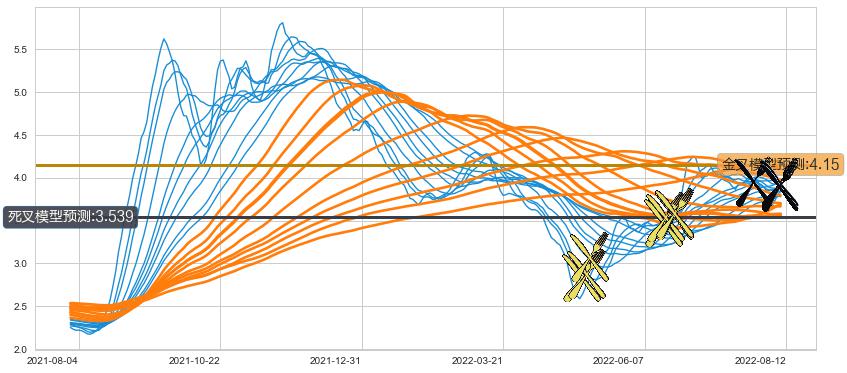 ➢ 40小时均线于(2022-08-11: 3.933)形成【死叉】基于【死叉历史模型】预测死叉后最低波谷价格: 3.543, 死叉后最低价格3.870,尚未达到预测最低波谷价格, 预期继续下跌