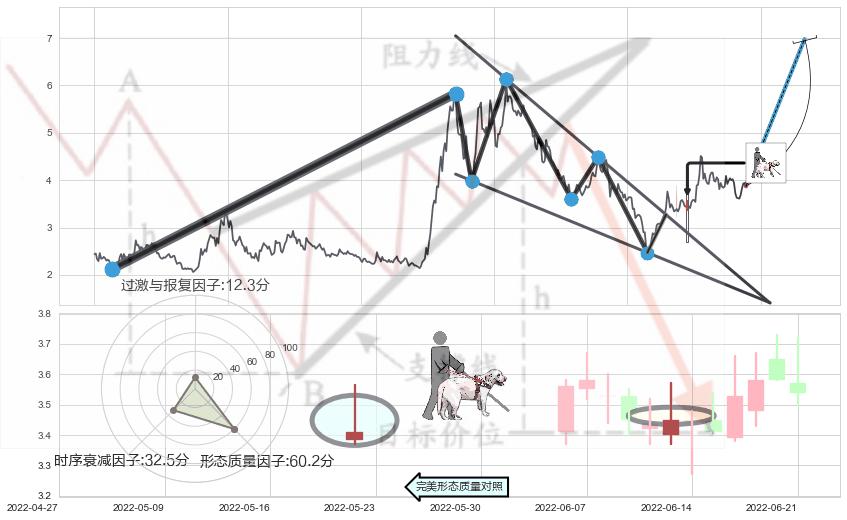 ➢ 【买1】: 激进型 买点 →(2022-05-19: 3.270 )形成突破降🚩楔型【整理】形态