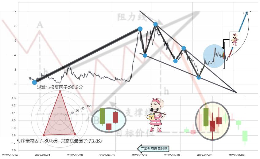 ♘ 阻力价格位5.80,可信任强度61.35%,距离最后交易2022-08-12形成的收盘价格3.870相差 +49.95%
