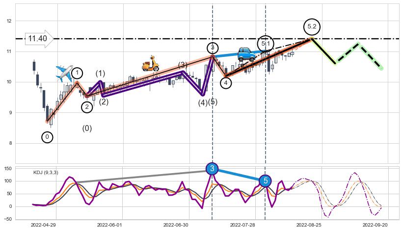 ➢ 5.1: 预测当前第5浪位置(2022-08-02, 11.01),仍然有上升空间