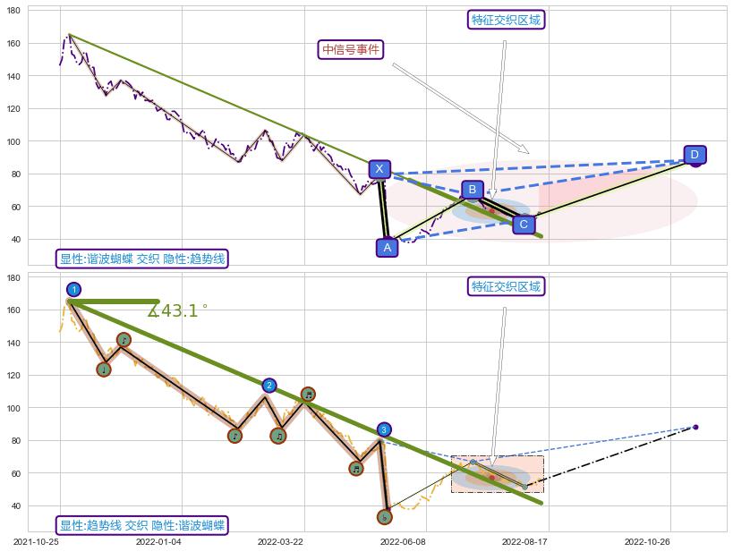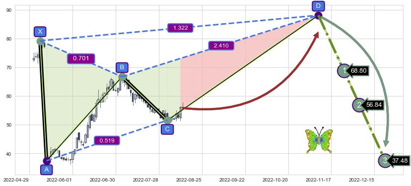 ➣ 未完成【蝴蝶】形态起点X: 2022-05-11, 已到达C点: 2022-08-03, 预测最终D点: 2022-11-09, 共129交易日